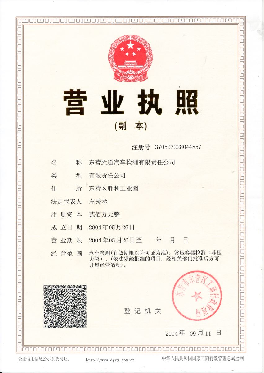 东营胜通汽车检测有限责任公司成立于2004年,独立的法人资格,注册资金200万元,固定资产800万元,占地面积13400平方米,其中,检测车间使用面积1500平方米,办公面积1400平方米,并配有停车场地等辅助设施;主要从事机动车安全性能检测、机动车环保尾气排放检测、道路运输车辆综合性能检测、常压容器罐体检测等业务。是目前检测行业设施设备较先进,检测能力较强的综合性检测机构。同时,还是一处集车牌制作、发放、安装,二手车交易(税)、过户,道路运输车辆达标车型核查、技术等级评定等多项业务为一体的综合性服务机构。